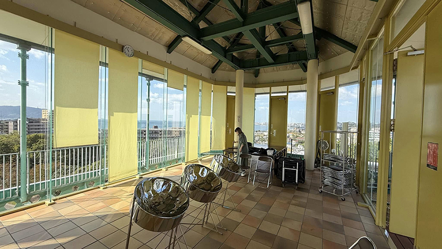 | スティールパン・レッスン初日の会場は舞子のコミュニティセンターにあるスタジオです. 舞子には,海岸沿いに(たぶん…)有名な洋館があり,高校生の頃に1人で絵を描きに行った思い出の場所です. 生涯で描いた油絵は3枚だけですが,そのうちの2枚目が舞子の洋館をモチーフにした作品です. 約50年ぶりの再訪に,大変感慨深い思いですが. 舞子が明石海峡大橋の真下にある街だったとは,今回初めて気づきました. 明石海峡大橋はこれまで何度も通ったことがあるのに,自分がその場所を知らなかったことに驚きです…笑. 会場のスタジオは屋上テラスに全面ガラス張りでロケーションが素晴らしく,見晴らしも最高です. 今日はドレミの練習に加えて,課題曲のイントロと,先生の伴奏に合わせてコードの構成音を即興で(かなり適当に…笑)演奏するという,楽しいことしました. スティールパンのアナログな音の響きは豊かで,癒されます.往復3時間以上の道のりですが,なんとか続けていけそうです. |